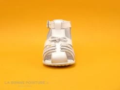 La semelle de marche blanche est souple, avec un renfort sur la pointe pour protéger les petits orteils de l’enfant.