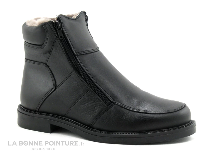 Ce bottillon confort Homme avec fermeture éclair est en cuir souple noir de grande qualité.