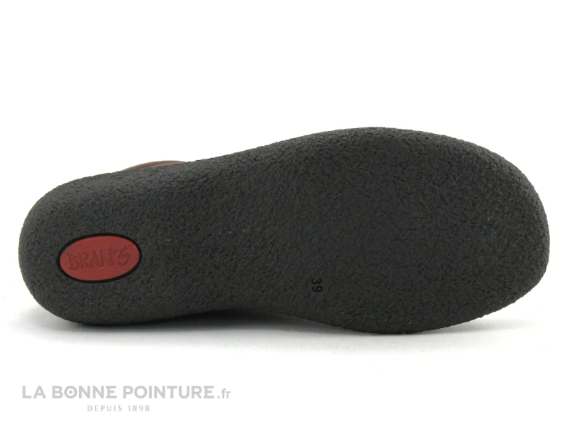 La semelle de marche des boots Femme Brans est marron aspect crêpe, très souple avec un talon d’environ 2.5 cm.