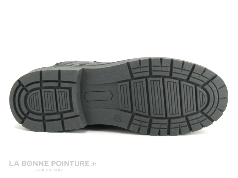 Ces bottillons à lacet Homme sont en simili cuir noir avec un peu de gris à l’arrière et sur la languette.
