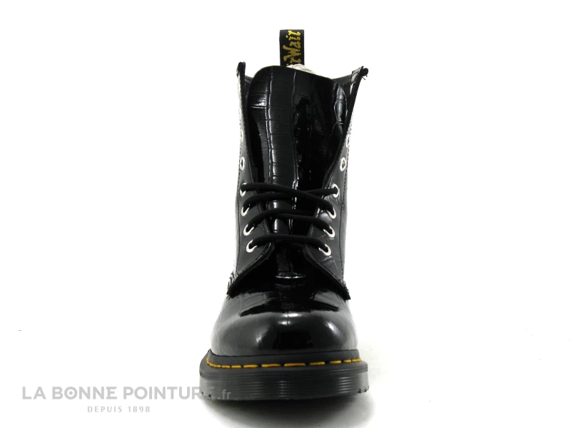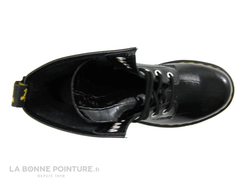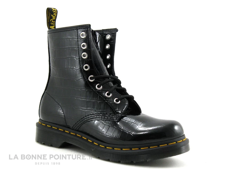 Cette superbe chaussure montante Doc Martens 1460 est en cuir de grande qualitĂ© noir verni, aspect croco pour suivre de près la tendance…