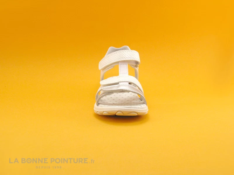 Ce nu-pieds enfant est en simili cuir blanc et argentĂ©, avec 2 brides velcro sur l’avant pour s’adapter au pied de votre fillette.