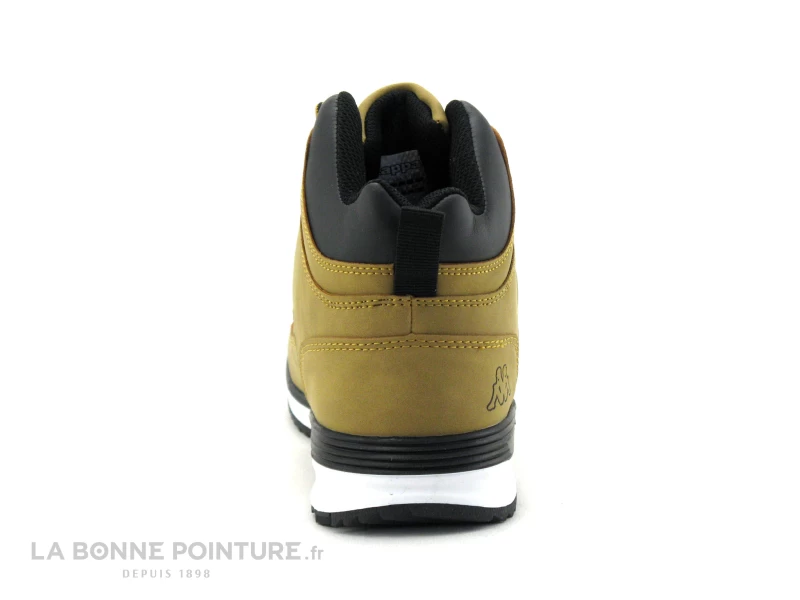 Cette chaussure montante juniors Kappa Astos est marron clair (yellow tan) avec une partie noire sur le haut du bottillon.