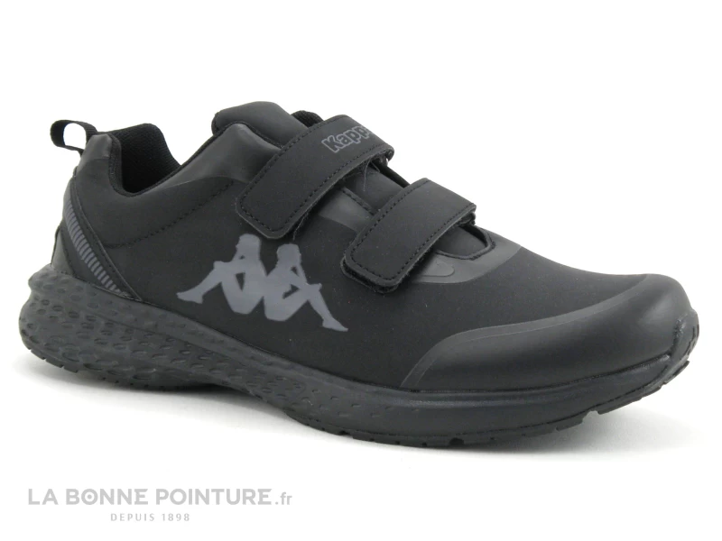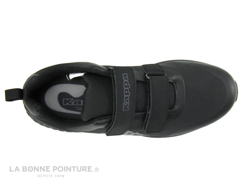 Ces sneakers Homme avec velcro Kappa sont noir mat, avec le logo Kappa en gris sur le côté.