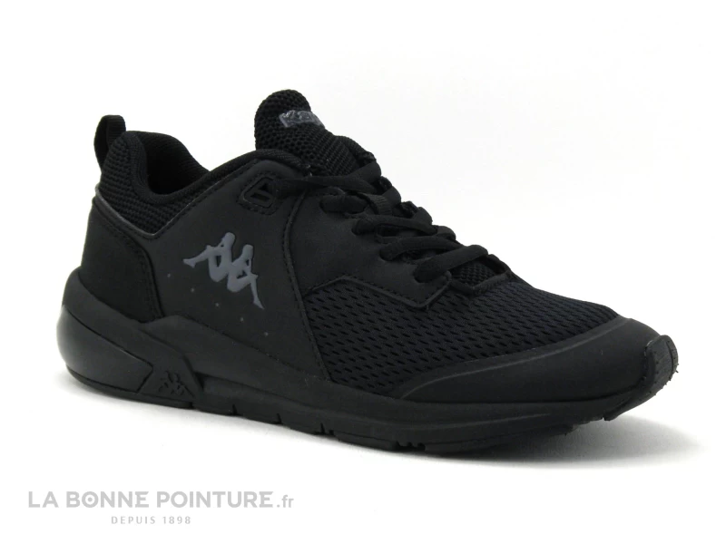 Cette basket enfant / juniors combine tissu maille et matières synthétiques résistantes noirs, avec le logo Kappa en gris sur le côté.