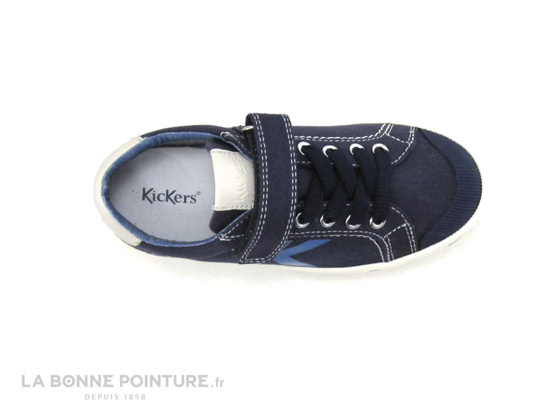 Cette basket enfant Kickers est en toile bleu marine, avec une touche de blanc et le « K » de Kickers en bleu sur le côté externe de la chaussure.
