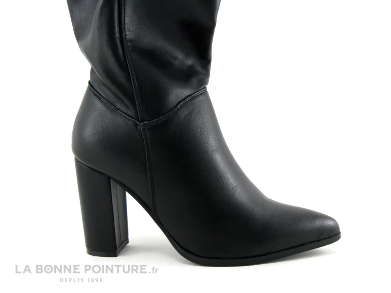 Cette botte noire à bout pointu possède une tige légèrement élastiquée, afiin de s’ajuster à votre jambe.