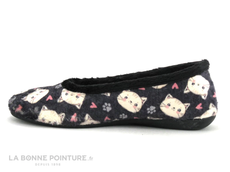 Maison Espadrille 6176 Noir Gris Rose – Pantoufle Ballerine Souple Avec Chats