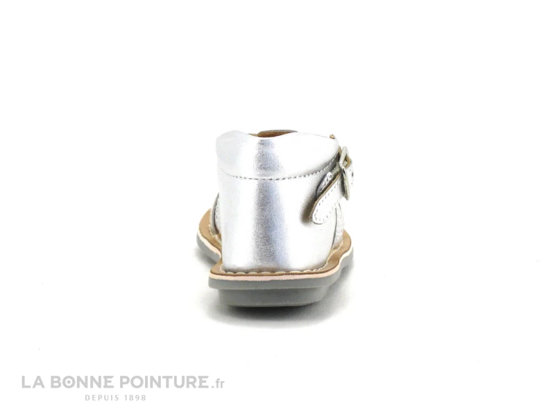 La petite boucle argentée permet de fermer la sandale premiers pas fille Minibel, réglable sur 5 positions.