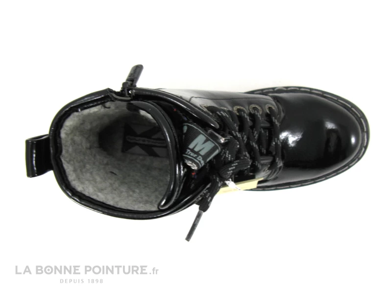 Ce bottillon fille Mustang True Denim est en simili cuir noir verni.
