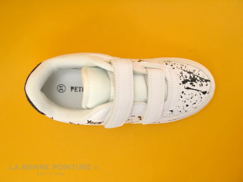 Petit Genie ES4075J Blanc – Tachetee Noir Et Jaune – Basket Velcro Fille