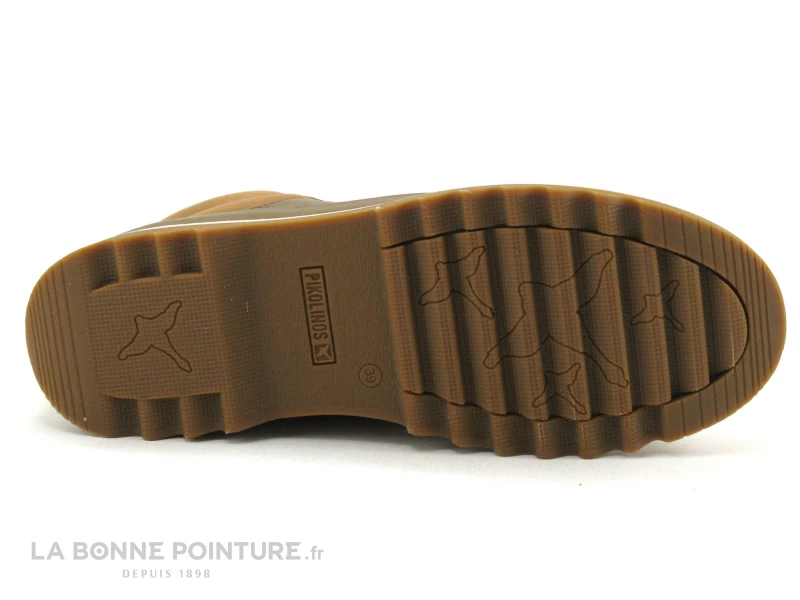 Cette chaussure montante Femme Pikolinos Vigo W3W est en cuir marron, avec le tour de cheville marron plus clair.