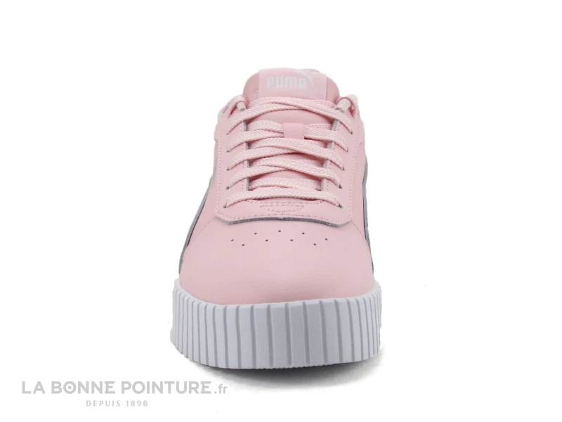 Le lacet rose traverse 6 oeillets afin de fermer efficacement la chaussure rose Puma Carina.