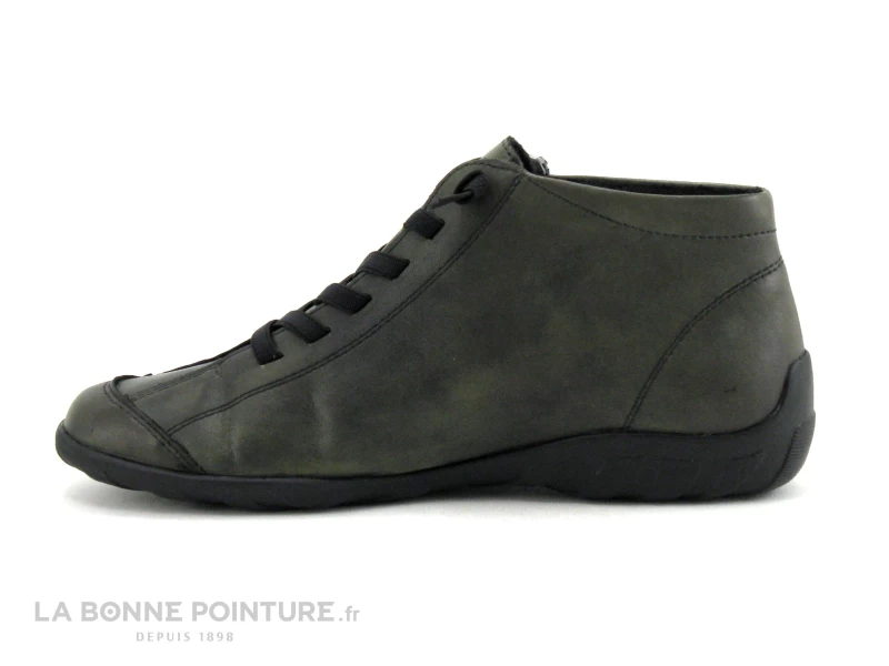 La fermeture éclair placée en biais côté externe facilite la fermeture et l’insertion du pied dans la chaussure Remonte kaki.
