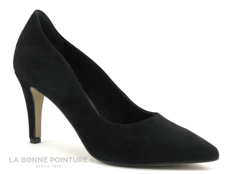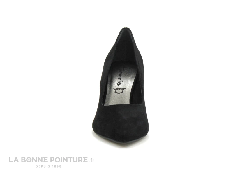 Cette chaussure à talon haut et bout pointu Tamaris est en cuir velouté noir, pour s’accorder avec toutes vos tenues…