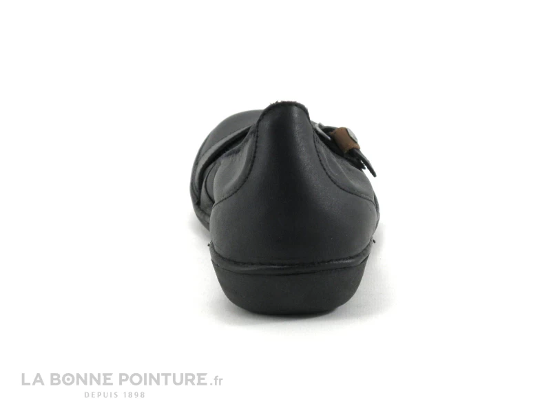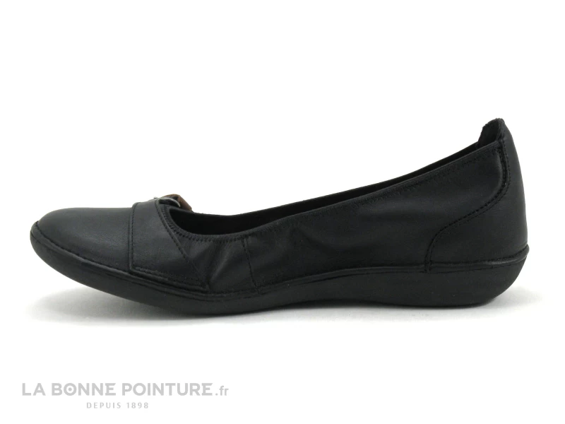 Cette ballerine femme est en cuir de qualité noir, ornée d’une bride sur le devant avec un petit passant marron, pour un brin de fantaisie.