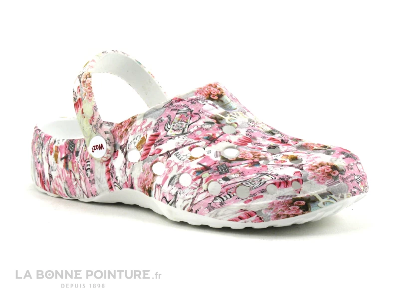 Imprimé romantique et rétro chic très féminin pour ces sabots femme Woz Cheeze Shabby, aux tons de rose !